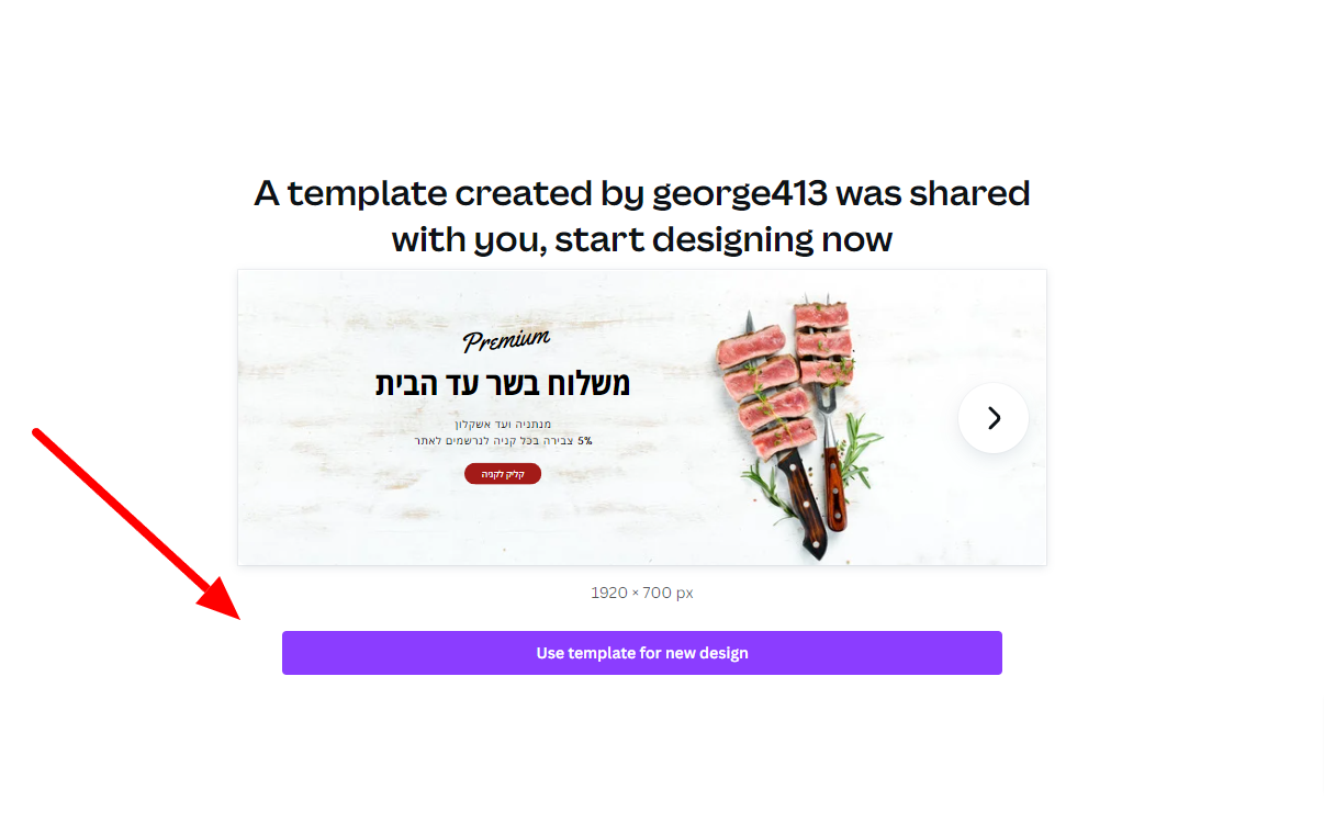 לוחצים על הקישור הטמפלט הרצוי ובוחרים באופציה " use template for new design "